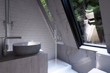 Paredes de baños con recubrimiento en material WPC, alta resistencia a la humedad